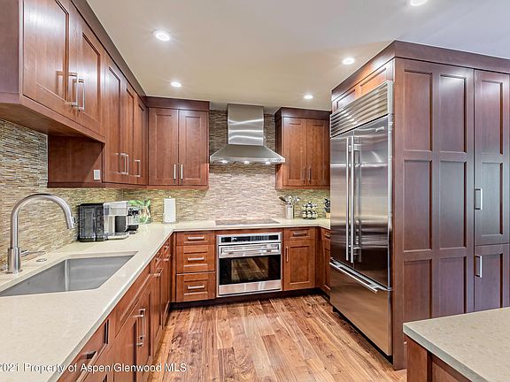 This gracious, contemporary, end-unit townhome with three levels of beautiful walnut floors and cabinetry throughout is located just two blocks to the slopes as well as Aspen's finest restaurants and shops. Features a great outdoor patio, a common area lawn, and is surrounded by mature Aspen and Pine trees. Not available in the summer months