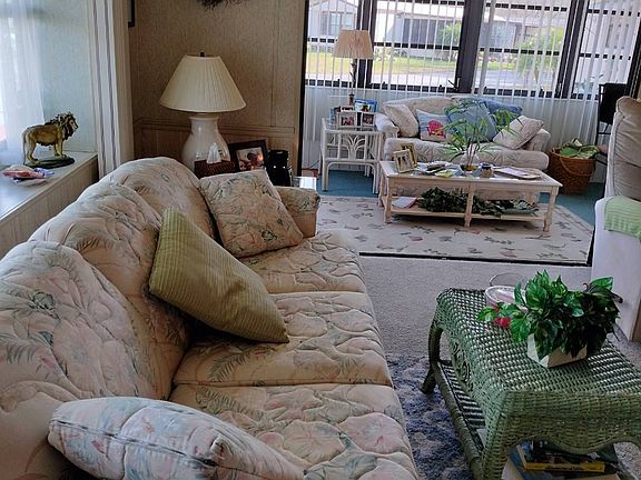 Looking to get away to sunny Central Florida? This 838 sq ft, one bedroom,1.5 bath home in the Hidden Golf is for you. It has the perfect floor plan with plenty of space and storage. There is a large 19 X 14 master bedroom with an ensuite half bath and a large closet. Another main full bath and an open concept kitchen with newer appliances is centrally located. The house comes fully furnished with a sleeper sofa in the front room. Not to mention, the 20 X 9 ft fully enclosed lanai has glass windows, A/C, and heat providing additional living and/or entertaining space. The 3-ton A/C is 2.5 years old. The roof is about five years old. The detached, extra-large 19 X 7 shed holds a newer washer/dryer while allowing room to park a golf cart. The 1.5 sized driveway provides plenty of off-street parking and/or room for outdoor seating. The home was painted about 3.5 years ago. The monthly lot rent is $507.05. Hidden Golf is a 55+ gated community with amenities such as a pool, clubhouse, onsite pub/restaurant, 18-hole executive golf course, dog park, lake access, shuffleboard/tennis courts, bocce ball, exercise room, outdoor storage, and a billiards room. This community is very popular as it is known for its friendly, fun atmosphere with plenty of activities including dances, potlucks, cards, bowling leagues, golf leagues, golf cart parades, church services, entertainment, holiday parties, etc. Park approval is required of all potential residents. The application process includes passing a background check. Although this is a 55+ community, anyone 40 years and above may apply. Don't let this one get away. Call the listing agent to schedule an onsite or virtual tour.