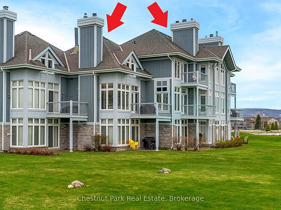 Welcome to a once-in-a-lifetime opportunity to own one of the largest condominiums in Collingwood's sought-after Lighthouse Point. This exceptional 2-in-1 unit spans 2,950 sq. ft. of finished living space, offering 5 bedrooms, 6 bathrooms, 4 fireplaces, and enough room to host extended family, friends, or simply spread out and enjoy peaceful waterfront living. Imagine morning coffees overlooking the sparkling waters of Georgian Bay, or evenings watching sunsets over the iconic lighthouse and protected shoreline right from your windows. Thoughtfully combined, Units 849 & 851 provide a unique layout with 2 kitchens (ideal for entertaining or multi-family use), 2 spacious primary suites with fireplaces and ensuites, 2 more guest bedrooms, plus a 5th bedroom or cozy den. The main floor features a wide-open connection between the original units, while a hallway on the upper level seamlessly blends the two. This one-of-a-kind residence is nestled within a vibrant, active waterfront community offering everything for a four-season lifestyle: a marina, two outdoor pools, private beach, tennis and pickleball courts, walking trails, and a recreation centre with an indoor pool, gym, games room and social lounge. Its the perfect place to kayak, paddleboard, walk, play, relax or do it all. Whether you're looking for a full-time home, a luxurious weekend escape, or a multi-generational retreat, this property is a rare find. Live the waterfront lifestyle you've been dreaming of right here at Lighthouse Point.
