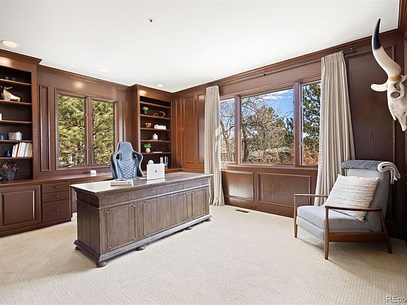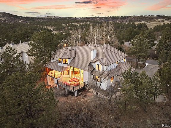 Nestled within the prestigious Village at Castle Pines community, this exquisite 5 bed | 5 bath residence with a modern cottage feel offers a seamless blend of luxury, privacy, and coveted mountain views. Tucked on a serene cul-de-sac, this home boasts new interior and exterior paint, RECENTLY REPLACED MECHANICALS, thoughtful updates, refined millwork, and hardwood floors throughout the main level. A dramatic 2-story foyer welcomes you in. The living room, enhanced by a gas fireplace with tile surround and wood mantle, sits adjacent to a sizable dining room with seating for 8+. Light-filled, the great room showcases vaulted ceilings, custom millwork, gas fireplace, and floor-to-ceiling windows that frame treetop and mountain vistas. The open concept chef’s kitchen features Viking appliances, a Sub-Zero refrigerator, granite counters, and an oversized island with seating for 6+. The dining room, kitchen, and great room flow effortlessly out to the newly rebuilt Trex deck, complete with built-in grill, Bromic heater, privacy shade, and sensored lighting—perfect for elevated outdoor entertaining. A richly appointed wood-paneled office, sizable laundry room, 4-car garage with epoxy floor, and powder room round out the first level. Upstairs, the primary suite boasts a dual-sided fireplace, spa-like en suite bath, and spacious walk-in closet. 3 additional bedrooms and 2 bathrooms complete the upper level. The walkout lower level offers a wet bar, recreation room, and covered patio, and a 5th bedroom, en suite bath, and 2 oversized storage rooms provide versatility for additional living space including a home gym or golf simulator. Neighborhood amenities include a park within a 5-minute walk, 3 pools, fitness center, tennis + pickleball courts, and 13 miles of trails—all within a gated enclave. Experience the pinnacle of luxury Colorado living in this stylishly comfortable home - bright and airy yet cozy at the same time, it's an absolute must-see!