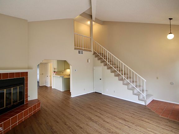 Centrally located at the foothills of Duarte is this wonderful 3 bed, 2 bath Townhouse. Situated at the rear of the complex this end unit offers a quite retreat from the hustle and bustle of the city. Featuring a semi-private front, side and rear yard with a patio and mature landscaping, this space is well suited for Southern California outdoor living. Vaulted ceilings, new flooring and freshly painted interior, the living room offers a handsome brick fireplace, a dining room that opens to the kitchen and a main floor bedroom and restroom that complete the first level. At the top of the stairs the landing overlooks the living room. A second bedroom and bath, and a large master bedroom with en-suite bath, walk-in closet and large private balcony with an exquisite view of the San Gabriel Mountains complete the upper level. The laundry area is located in the two-car garage that provides direct access to the rear patio.
