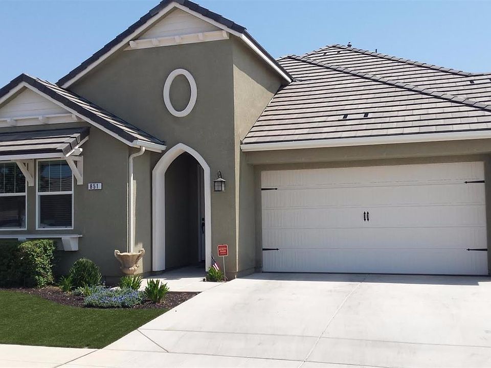 Spectacular Clovis Leo Wilson featuring 3 bedrooms PLUS BONUS Entertainment/Office room with elegant French doors. The culinary enthusiast is embraced with a gourmet kitchen highlighted by contemporary amenities including, stainless steel appliances; gas cook top, vast granite counter tops, walk in pantry , and adjacent office suite. . Energy conscious design features a tankless water heater; custom front entry door; SOLAR ( owned ), and insulated 3 car garage door panels. Advanced technology upgrades include wireless security systems, motion activated dimmer switches, and modern smoke/ fire sprinklers throughout. Professional drought tolerant landscaping with covered patio for family entertainment. Video tour: http://tours.vizzicalifornia.com/ub/28169/851-twinberry-ave-clovis-ca-93619
