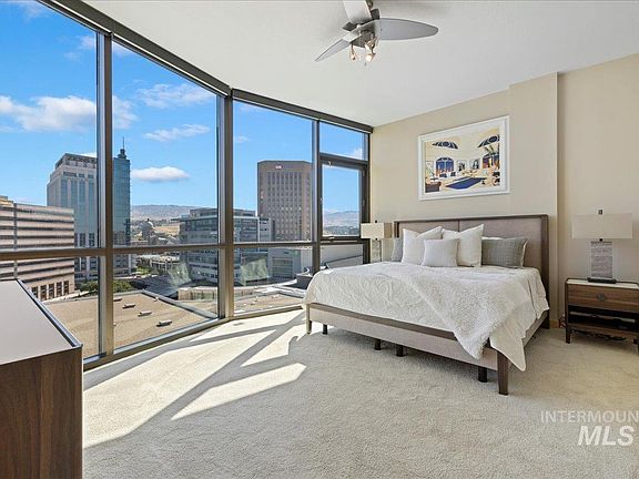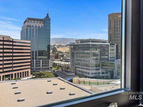 Presenting a fully renovated 10th floor condominium offering exceptional urban living with stunning cityscape views. This private corner unit is located at the end of the corridor, ensuring enhanced privacy for its residents. Floor-to-ceiling windows showcase panoramic vistas, including sunsets, sweeping skylines, and prominent landmarks such as Idaho’s capitol building. Over $150,000 in upgrades, featuring new quartzite countertops, French oak engineered flooring, custom alder Belmont cabinetry, a custom dry bar, all new appliances, including washer & dryer. Situated in downtown BODO, the condo offers a north-facing balcony for outstanding city views. The interior features an open kitchen and an impressive primary suite. A flexible alcove currently serves as office space. Amenities include secure building access, dedicated parking space, storage unit and pet relief area. Check out our 3D Tour! Consider our 6th floor studio perfect for guests, business associates, or potential ADU. MLS 98959713