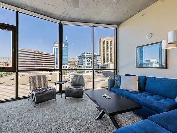 Welcome to the Aspen Lofts, a premier residence located in the heart of Downtown Boise. This grand studio offers breathtaking views through its 10-foot wall of windows, situated in vibrant downtown, you'll be just steps away from a variety of restaurants, exceptional dining, entertainment, and cultural experiences, all within a walking distance. The north-facing living room provides stunning views of the Boise skyline & picturesque foothills. Living here means you're just moments from The Grove, Bodo, BSU, hospitals, shopping, theaters, museums, the Boise River Greenbelt, and beautiful parks. This condo is perfect for those who desire an active lifestyle and low-maintenance living with the convenience of being able to lock and leave whenever you like. The monthly HOA fee includes water, sewer, trash, building security and high-speed internet, making this a truly fantastic opportunity to experience urban living at its finest. Only 4 miles from the Boise international Airport & private hangars. This condo being sold fully furnished, turn-key, ready to go!