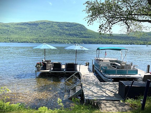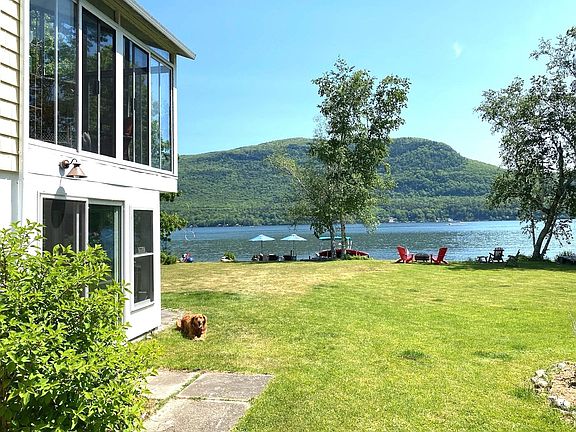 ABSOLUTELY AWESOME LAKE DUNMORE SETTING OFFERS PANORAMIC VIEWS OF LAKE DUNMORE WITH MOUNT MOOSALAMOO RISING FROM ITS SHORES! The historic Lake Dunmore Hotel once stood on this spot where you can vacation every day with 180 feet of your own direct shoreline, meandering along the spacious .66 acre LEVEL LOT. Nicely renovated with sweet touches, this home takes advantage of the spectacular view with both a sunroom and sun porch, each with expansive windows on three sides. The new kitchen is delightful with energy star appliances and marble countertops. Nickel-groove ceilings, shiplap walls, beadboard, pocket and barn doors enhance the interior while the new roof, siding, and windows provide easy maintenance for years to come. A three bay carriage barn conveniently houses vehicles, boats, and toys. Its overhead bonus room with lake view is a cool spot for a private office, studio, and/or overflow space. The lakeside deck/dock creates an oasis of leisurely living and accommodates multiple-boat dockage. Swim, boat, fish and play in sparkling clear waters. Soak in the view all year long. Golf courses, hiking in the Green Mtns, a local hospital, and Vermont ski areas are all within easy reach. Nearby towns of Middlebury and Brandon provide excellent restaurants, art and culture. Isn't it time to enjoy life on the lake and make your own Dunmore memories?!!