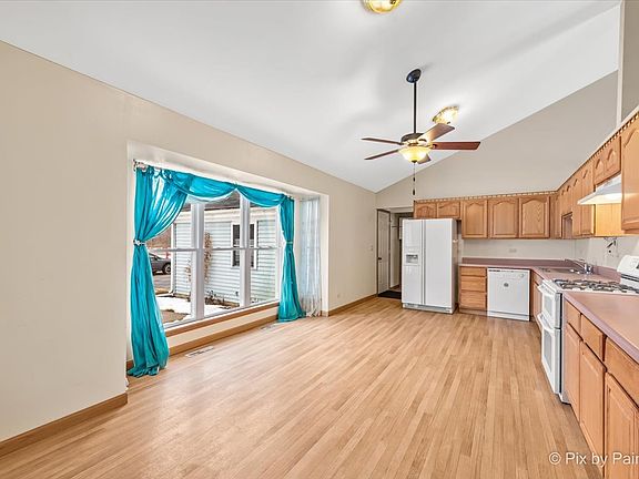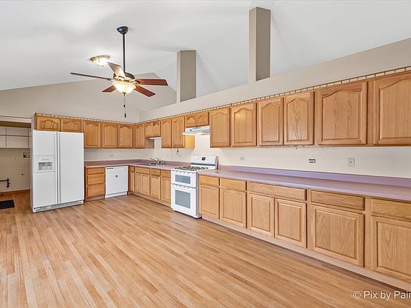 A quiet cul de sac surrounds this three-bedroom ranch property. From the fenced-in backyard, you can easily access a walking path behind the property. A neutral color scheme and vaulted ceilings complement the home's neutral decor. The spacious living room is lit by nautical lighting. With plenty of cabinet space and hardwood flooring, the kitchen provides room for a dining table. The bedrooms are generously sized, and there are two full bathrooms. Recent deep cleaning of the property included all cabinets, drawers, and appliances. There is some work to be done on the exterior of the property. For more information, please contact the listing agents.