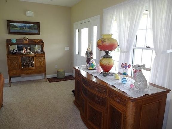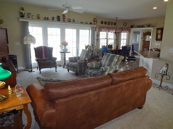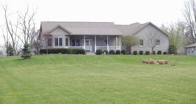 This spacious custom built ranch sits on 2 beautifully landscaped acres & is located on a cul-de-sac. A paved, tree-lined drive leads to the front sidewalk. A 25ft covered front porch & entry w/side lights & beveled glass opens to a dramatic great room, w/new ventless Jotul propane gas stove. The great room has sliding glass doors that opens to a 45ft covered rear porch & brick paver patio. Front & rear porches each have 2 exterior ceiling fans. The owners prior to moving in, had the entire interior of the home re-painted (ceilings, walls & some trim work). All of the flooring was replaced. Split floor plan for privacy. This home has 9ft ceilings throughout, 8ft ceilings & partial wood laminate flooring in the finished basement, giving you 2478 sqft of living space. Extremely maintained.