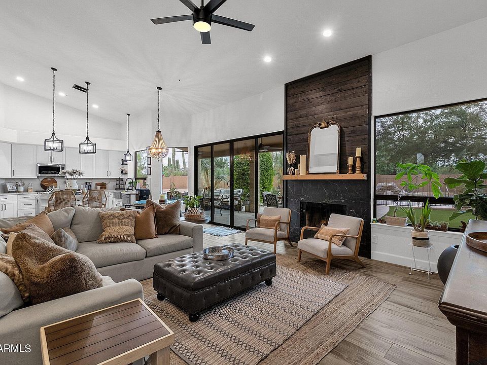 This home will certainly be at the top of your list, so don't miss it! Featuring 4 beds, 3 baths, and 3002 sqft of generous living space, along with 3 garage spaces, this could be the home you have been waiting for! Marvel at the updated kitchen with large center island, stainless steel appliances, Quartz countertops and backsplash, stainless steel farm sink, and updated cabinets and hardware. Discover gorgeous, updated wood plank flooring and updated lighting and soaring ceilings. This home boasts a floor-to-ceiling wood-burning fireplace for your enjoyment on those chilly days. Entertaining is a breeze on warmer days with a private pool with beautiful water feature, private ramada, and a covered patio with extended tumbled stone pavers. Come see this home before it is gone!