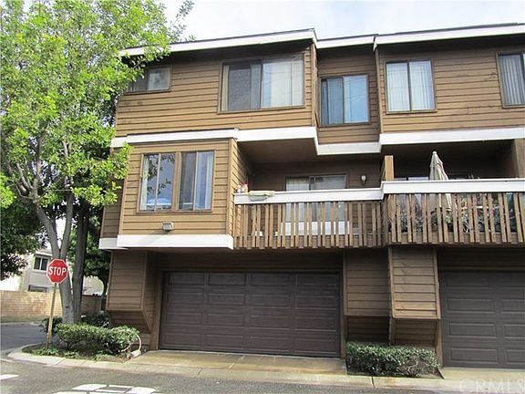 Great area and location! Enjoy the biggest and popular townhome in the beautifully " Meadowbrook Gated Community". This house has Bedroom and bathroom on main floor. This townhome has three bedrooms and three full bathrooms end unit, only one wall share with neighbor. The spacious living room is open with high cathedral ceiling. We can eat in dining room or outside balcony connect to kitchen. Fireplace in big and open living room with double patio doors connect to big balcony. This house has two Balconies for two side front and rear. Laminate floor through out of the house. The fantastic master bedroom with vaulted ceiling, granite vanity top and double sinks. Direct access to two car garage plus plenty of Guest parking nearby. New Central AC and heat. Association includes cold and hot water/trash/pool /spa/ tennis court/ insurance/ gym / Ex.room and all of outside maintenance. The third car park outside at parking lot just $100.00/year. The property is under well maintenance and ready to move in. It's close to shopping, schools, restaurants, supermarket, banks, transportation and 22 freeways.