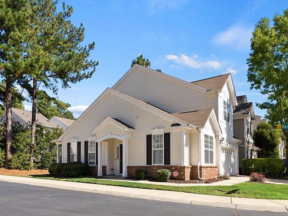 Nestled in an extraordinary location, this exquisite end unit townhome with open floor plan graces a prime corner lot. It offers privacy & space of a single-family residence, connected only by a storage unit wall outside, providing an exclusive retreat. Crafted with meticulous attention to detail by Centex Homes, quality of construction is evident in every corner of this abode. Walking inside, the family room effortlessly flows into generous kitchen adorned with granite countertops & welcoming breakfast nook. Well-appointed office space downstairs adds to versatility of this home. First floor exudes fresh sense of elegance with new LVP flooring, enhancing overall aesthetic. With 2 bedrooms & 2.5 baths, each bedroom boasts its own private bath and WIC. Owner's Suite showcases vaulted ceilings. Large WIC ensures your wardrobe is always organized. En-suite bathroom is complete with dual vanities, relaxing garden tub, & a separate walk in shower. Spacious 2-car garage adds to convenience of everyday living. Don't miss this great townhome located near RTP, airport & Brier Creek!