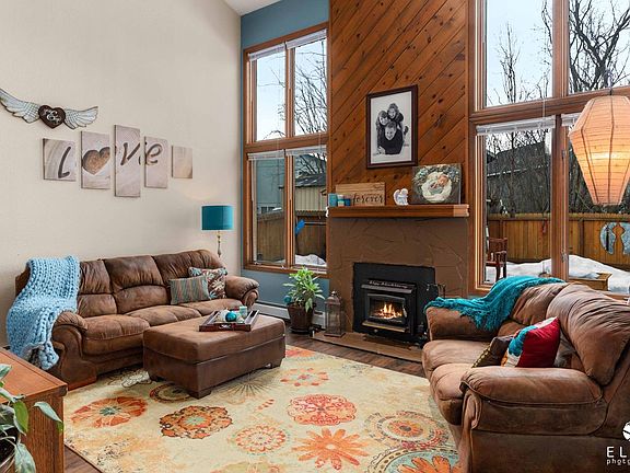 Spacious, light & bright, south facing townhouse style ZLL. Soaring vaulted ceilings, new laminate flooring on main level & wood stove fireplace insert. Large master suite and master bathroom with bonus office area. Garden oasis backyard w/tons of perennials, oversized deck for entertaining all summer, flower boxes, raised beds and storage shed. No HOA dues! Home warranty included!