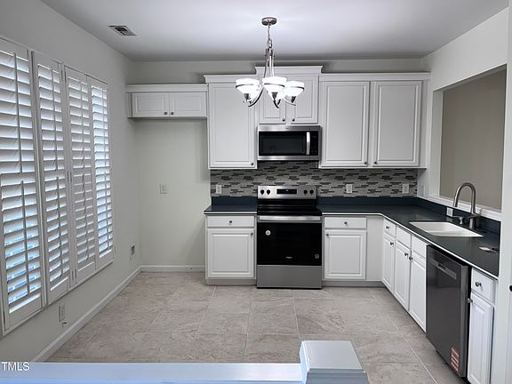 Lovely end unit townhome that is sure to please. Large open floor plan on the first floor with a kitchen offering SS appliances and an eat in area (breakfast nook) or is open enough for a furniture style island. Property has two assigned parking spots and the tenant will have use of the community pool. Located near dining, shopping, area highways and just minutes to RDU and RTP. Sorry, no pets.