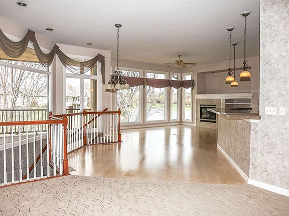 Incredible Former Model home on a Fabulous Lake Lot! Great open floor plan in spectacular condition! Six panel entry door with transom window above, two sidelights, tile floor, half wall with arch above and round column at end plus 10' ceilings! Fantastic formal dining with triple windows with elliptical transom window and 10 ft ceilings! Super living room with double windows overlooking lake with transom and ceiling fan! Spectacular kitchen with granite tops, huge eating bar, Custom Cupboards cherry cabinetry with roller trays, lazy susan, appliance garage, gas cooktop and separate oven, Bosch dishwasher, bay window above the undermount sink, walk-in pantry, 10 ft ceiling, can lighting and tile floor! Large breakfast area with open rail stairway and maple floor! Incredible hearth room with large picture windows with transoms overlooking lake & remote controlled shades, built-in TV center & gas fireplace with large shelf above, 10 ft ceiling, maple floor and Atrium doors to deck with transom! Guest half bath with pedestal sink and tile floor! Huge laundry room with cabinetry, sink, window overlooking lake, huge folding table with present wrapping station, tile floor and a large hallway closet/linen! Fantastic master with double coffered ceiling to 11 ft with crown molding, large bay windows overlooking lake, Atrium door to deck and ceiling fan! Luxurious master bath with separate vanities with Corion tops, Jacuzzi tub with real glass block window above, walk-in Corion and glass shower, linen cabinets, built-in bench with storage below, separate toilet room, tile floor and octagon coffered ceiling! Sharp guest bedroom with picture bay windows with elliptical transom, 10 ft ceiling and a large walk-in with sweater rack! Great hall bath with large Corion top vanity, tub with tile shower over and tile floor! Fabulous basement family room with corner gas fireplace with tile and wood face including wood columns and panels to ceiling plus built-in bookcases, huge picture windows, Atrium patio doors, game table area, closet, huge wet bar with raised top, recessed panel wood back & soffit with can lighting, back bar with glass display cabinets, full size frig space, dishwasher and microwave space! Bedroom 3 with full size picture windows, vanity and walk-in closet! Bedroom 4 with viewout windows and walk-in closet! Basement full bath with 4 ft vanity, wet room with tile look tub/shower and tile floor! Raised panel doors throughout home! Sound system! Plywood subfloor! Huge covered deck with stamped concrete patio below with hot tub outlet! Newer exterior paint and mostly all Andersen wood casement windows! Class 4 impact rated composition roof! Large 3 car garage with openers, fully painted and epoxy floor! Fully professionally landscaped yard with sprinkler and well! Fabulous lake views from all windows!