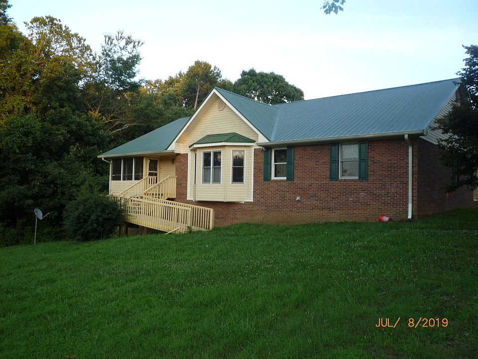 Spacious 4 Sides Brick Ranch sitting on 8 Plus acres in North Hall with mountain views. 2 Bedrooms, 2.5 baths on main with spacious kitchen with granite counter tops and view to family room. Brick fireplace and hardwood floors in family room. 1 bedroom and 1 bath on lower level. Lower level has full second kitchen and laundry room , family room, unfinished area with boat door. Needs some TLC SOLD AS IS No Disclosure. Public Water and Well on Property.