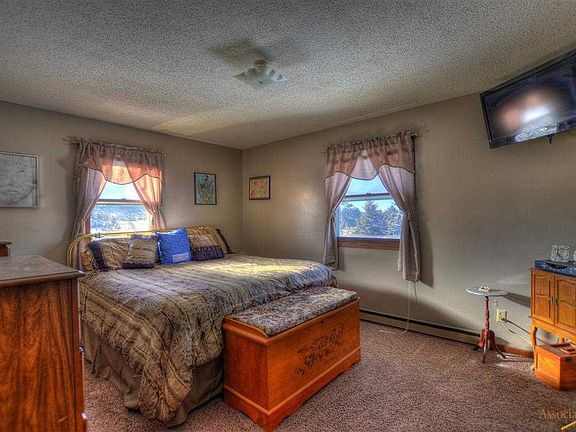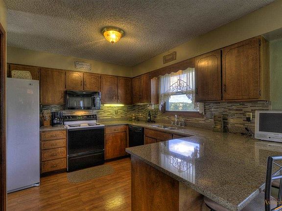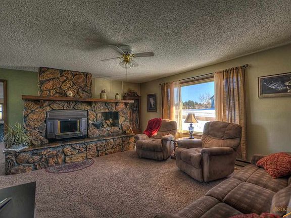 Hills living just minutes from Rapid City. Desirable neighborhood setting with ample space for additional outbuilding/garage. Large lot provides privacy and distance between neighboring homes and includes storage shed, apple and pear trees and more. Sprawling main level includes a 30' x 26' family room addition perfect for large gatherings and open to common areas. Additional main floor features include 3 bedrooms, updated bath, new quartz counter tops and glass tile back splash in the kitchen, wood fireplace and glass sliding doors exit in two places to deck and hot tub. Lower level includes a second family room, 4th bedroom (window not to current code) and second bath. Updates throughout including new shingles, gutters and downspouts, fresh paint inside and out, some newer windows and updated floor coverings throughout most of the home.