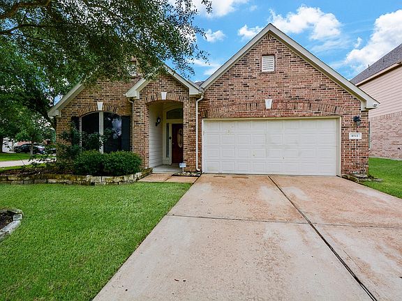 Charming one story corner lot home located in Canyon Lakes just moments away from Towne Lake. The home features an open concept floor plan, three bedrooms, formal dining, and formal living room. Kitchen has granite counter tops, breakfast bar, and stainless steel appliances. Fresh paint, new carpet in the bedrooms, tile and wood in the main living area. Large primary bedroom is separate from the secondary bedrooms. The primary bedroom includes double walk in closets, dual sinks, separate shower, and a garden tub. Home is across from the park, walking trails, and a pond. Don't miss the chance to get into a fantastic master planned community with amenities galore! Canyon Lake residents have access to Houston National Golf Course & Clubhouse, also available are multiple pools/splash pad areas.