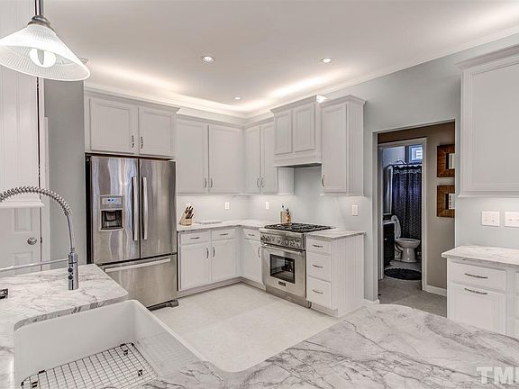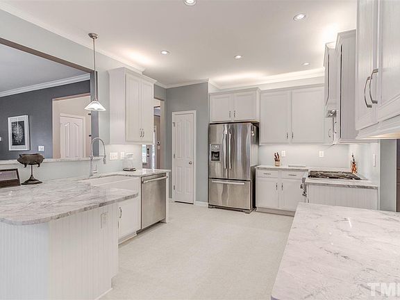 Stunning home on ideally situated lot in the heart of N Raleigh, mins to major highways, shopping & Leesville schools! Wrap-around porch, hardwoods, crown molding & open fl plan w/5BR+bonus incl 1st fl guest bed & full bath. Gorgeous renovated kitchen has granite, SS, gas range & under-cab lighting! Spacious master suite has vaulted ceiling, WIC & tiled bath w/ dual vanity. Expansive deck w/ total privacy overlooks beautiful wooded backdrop & lush backyard! Perfect home for entertaining & hosting guests!