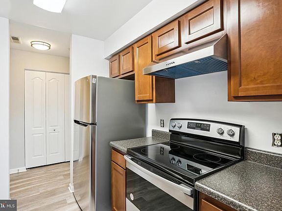 Great renovated two bedroom two bath, Living room, vaulted ceiling sliding window wall to the balcony, galley kitchen, dining room/home office space. Ensuite bedroom -bath, new carpet, one designated parking space.Many guest and open parking spaces. Community Pool and Clubhouse, Tot lot. Situated close to access roads, Downtown Columbia, Baltimore, and DC.