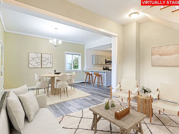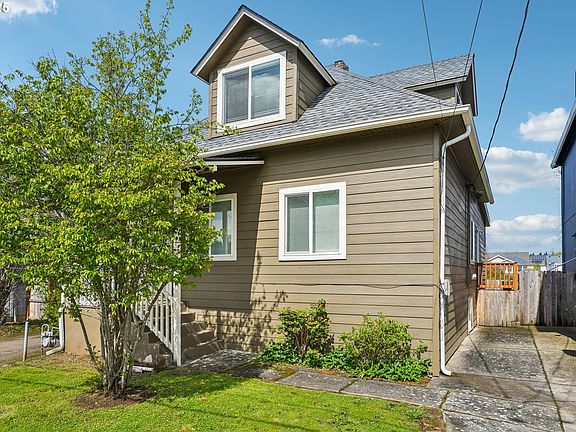 Updated farmhouse-style home near Rocky Butte with excellent layout featuring separate living spaces. Close proximity to local parks, schools, shopping, and public transit. Current owner has updated the flooring, roof, siding, electrical, HVAC, kitchen, windows, plumbing, paint, and windows. Updated open kitchen overlooks living room, excellent for entertaining. Upper level functions as primary suite with bedroom and adjacent full bath. Lower level has exterior access and kitchenette, perfect as additional living space or potential as separate living space. Large fenced yard and 1-car detached garage. Definitely a must see! [Home Energy Score = 4. HES Report at https://rpt.greenbuildingregistry.com/hes/OR10237196]