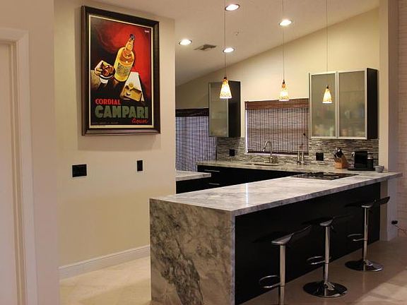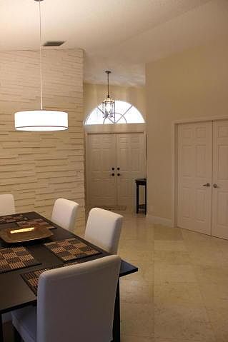 Beautifully updated 1-story lakefront home in gated community. Open floor plan with gourmet kitchen and quartz waterfall countertops and custom backsplash & top of the line GE Profile Stainless appliances. Stunning marble flooring throughout the home with custom baseboards. Newly renovated guest bathroom with marble tiles. Large covered screened patio with slate flooring overlooking lake. Newer roof. Community amenities include clubhouse with fitness room, library, kitchen and card tables. Two heated pools and a hot tub, tennis courts, basketball and handball courts. Cable with HBO and Showtime included in rent. Close to all major highways and shopping. **3rd bedroom does not have a built in closet. Owner will provide a free standing closet if needed by tenant. Brokered And Advertised By: Lang Realty/BR Listing Agent: Donna M Walker