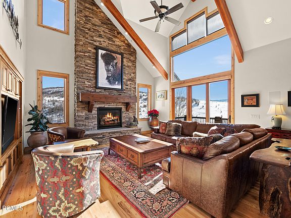 Go ahead, enjoy amazing mountain views while you sit in front of a warm, stone fireplace that exudes mountain elegance. Perched upon a hill in the exclusive gated community of The Trails at Jeremy Ranch, this classic mountain home includes three acres of land and is adjacent to hundreds more. Bring your bike or boots because hiking and biking trails are within site. And while nature abounds, this beautiful home is also convenient to life's necessities as it is central to Park City and Salt Lake City and just minutes to ski resorts, Kimball Junction and the Jeremy Ranch Golf & Country Club. With an open floor plan, one can seamlessly venture into the gourmet kitchen equipped with high-end appliances, steam oven and warming drawer. From here, one can meander through the dining area to the patio to enjoy the lovely yard. Or venture upstairs to the primary suite to cozy up with a book or watch the elk from the private deck. Beyond the 6 bedrooms, 5 bathrooms and multiple living areas, this house includes outdoor entertaining spaces, surround sound in the great room, tons of storage, a huge laundry room, solar panels with Enphase batteries and an oversized garage that has an EV charging station. Remember, if you're looking for commanding views, privacy, convenience and all the comforts of a warm mountain abode, this home is for you!