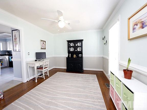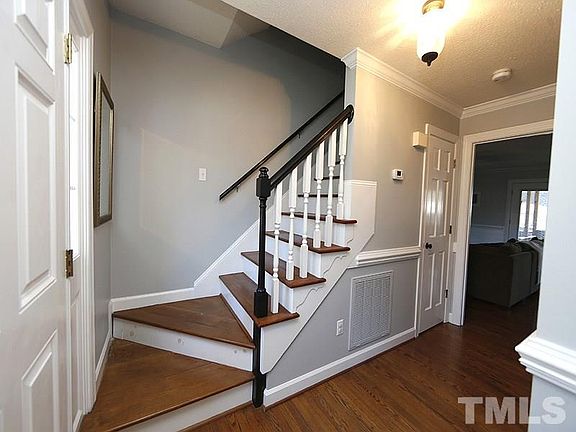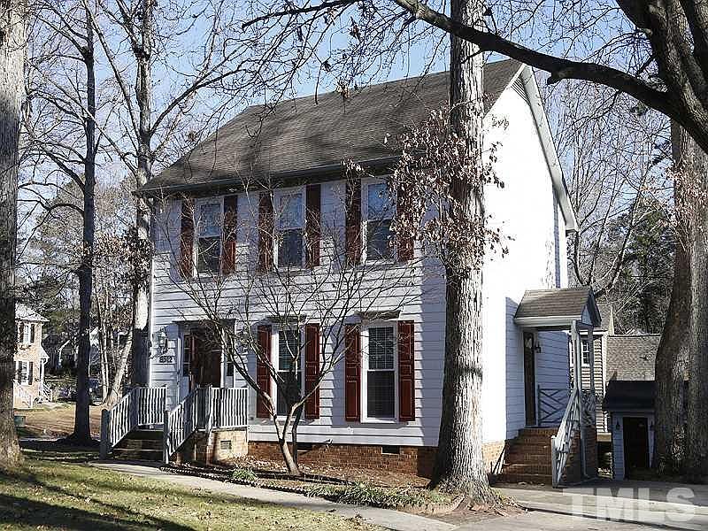 Durant Trails Charmer on a Cul-de-sac and large corner lot.Open floor plan w large kitchen flows to the light & bright family room w/ Masonry fireplace.Nice hardwood floors, trim & fresh paint. Dining Room can be used as a flex space or dining. Family room opens to screened porch & deck Upstairs offers 3 bedrooms w/ 2 full baths. Master shower recently upgraded. Unfinished attic for storage Detached storage/workshop. Pool and tennis community with access to walking trails.Access to I540 & upscale shopping