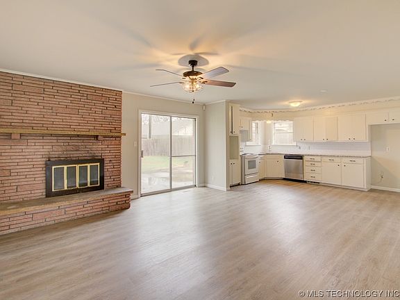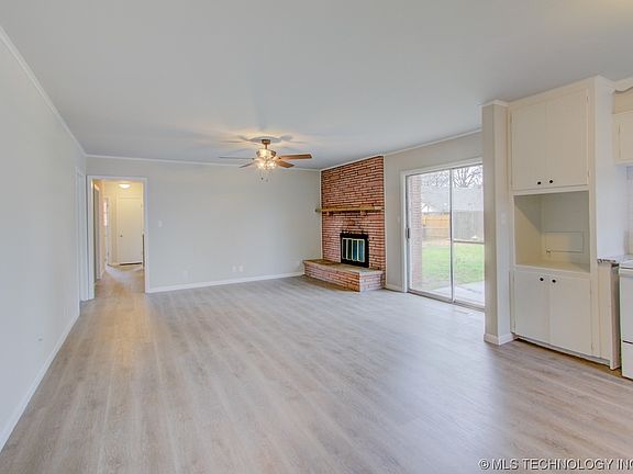 Perfect starter home, investment property, or for downsizing! Updated one level 3 bed, 2 bath full brick home on a quiet street near 31st and Memorial. New roof covering January 2023. New HVAC and freshly painted. The updated kitchen opens to the living room and has new appliances, Granite countertop, hardware, and fixtures. Built-ins in the hallway for extra storage space! New light fixtures, new flooring, and carpet throughout. Both bathrooms are updated with new tile, fixtures, faucets, flooring toilets, and countertops. Ceiling fans in all bedrooms. Storm windows. Inside laundry room. Fenced backyard with large patio. Great central Tulsa location, near I-44, less than 5 minutes from the local high school, and less than 15 minutes to downtown Tulsa and the Tulsa Airport.