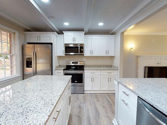 Fully renovated raised rambler hose. Upper level as a separate house features open floor plan with new granite countertops, new stainless steel appliances, new cabinetry, new wide plank flooring and beautiful views from the new oversized deck facing trees in over an acre land facing creek and open space for ultimate privacy. Kitchen is the perfect place to host guests and enjoy multiple seating options, with tons of storage and countertop space. Upgraded bathrooms with new fixtures, new vanity, new mirror and new flooring. New plank flooring in all bedrooms that have all been newly painted. All bedrooms, bathrooms and kitchen in one level. Newly stained stairs leads to fully renovated laundry and equipment room down stairs. Landscaping has been upgraded with privacy fencing to enjoy.