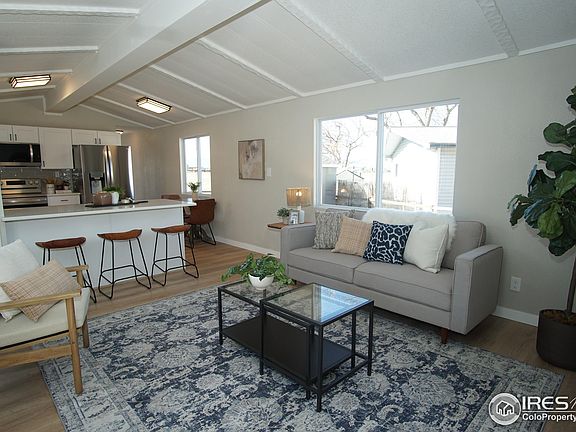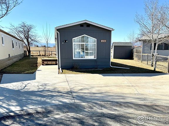 Turn-key 3 bedroom, 2 bath manufactured home on its own land. It has been beautifully remodeled with everything inside brand new. It has new luxury vinyl floors with new carpet in the bedrooms and new tile in the bathrooms. The generous sized kitchen is open concept and new from top to bottom: cabinetry, quartz counters, sink, backsplash tile, and stainless-steel appliances. It flows seamlessly into the living room with a large peninsula for counter seating. The bathrooms have also been tastefully updated. The HOA includes a community swimming pool, playground, tennis/basketball courts as well trash pickup. Such a quiet setting on a cul-de-sac with open space and mountain views behind the home. An extra large shed provides bonus storage. RV storage is available through the HOA w/fee. This property could provide great investment potential in Mountain Range Shadows with easy access to I-25. Take advantage of the area's flourishing growth, fueled by the proximity of the new Amazon facility, which not only offers potential employment opportunities but also boosts the demand for housing. This makes it an ideal location for potential rental income. Traditional conventional loan financing is not an option due to age of the home (call agent for lending options).