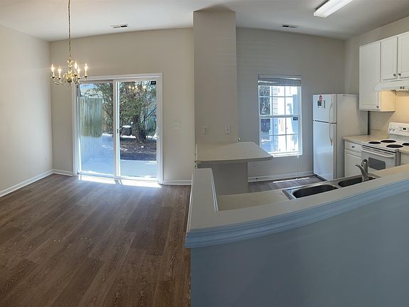 Location/Location/Location: Open Floor Plan townhome. Leesville schools. 3 bedrooms 2 1/2 baths with fireplace. Freshly painted throughout, Brand New carpeting and vinyl plank! The bedrooms are on the second story that allow for flexible space/home office. Large walk-in closet. Two assigned parking spaces. Patio and storage closet out back. Community offers playground, large pool and tennis facilities. Picnic/Bike/Hike at beautiful William Umstead State Park which is only 1 mile away. Shopping for groceries and fine restaurants just a short walk across the street.