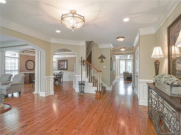Move in ready home in highly sought after Highgrove! Located right next to top rated schools. Brick exterior with fabulous curb appeal. Home features three family rooms - one on each level. Hardwoods throughout main floor and upper hallway. Gourmet kitchen with huge island, stainless steel appliances, double oven, drawer microwave, gas cooktop, granite countertops, and bar area. Formal living room and dining room. Oversized master with tray ceiling, separate walk-in closets, and large updated bathroom. Two separate office spaces and laundry on second floor. Third floor features full bath, large bedroom, and bonus room. Backyard oasis with large gunite pool, hot tub, fireplace, screened porch, and travertine patio.