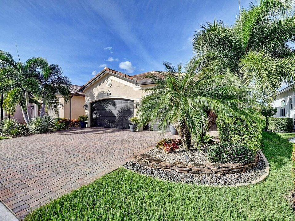 Immaculate Cabernet Model in Valencia Bay Lake Views from Master, Foyer, Kitchen, Dining, Living, and Breakfast rooms! Walk to Club House for tennis, pool +++ Reverse Osmosis 3-Filter System, designer light fixtures throughout, whole home generator, custom double-crown molding throughout, electrical motor Hunter Douglas custom blinds, plantation shutters, Covered Lania, w/BBQ & sink. New hot tub, GE PROFILE appliances, $3800 performance upgrade carrier air. Garage w/ new epoxy floors, new-age bold series cabinets, 56,000 lumens of LED, garage doors double insulated with heat-shield, extended driveway, side door w/ full stone path, sound system, way too many upgrades to list!