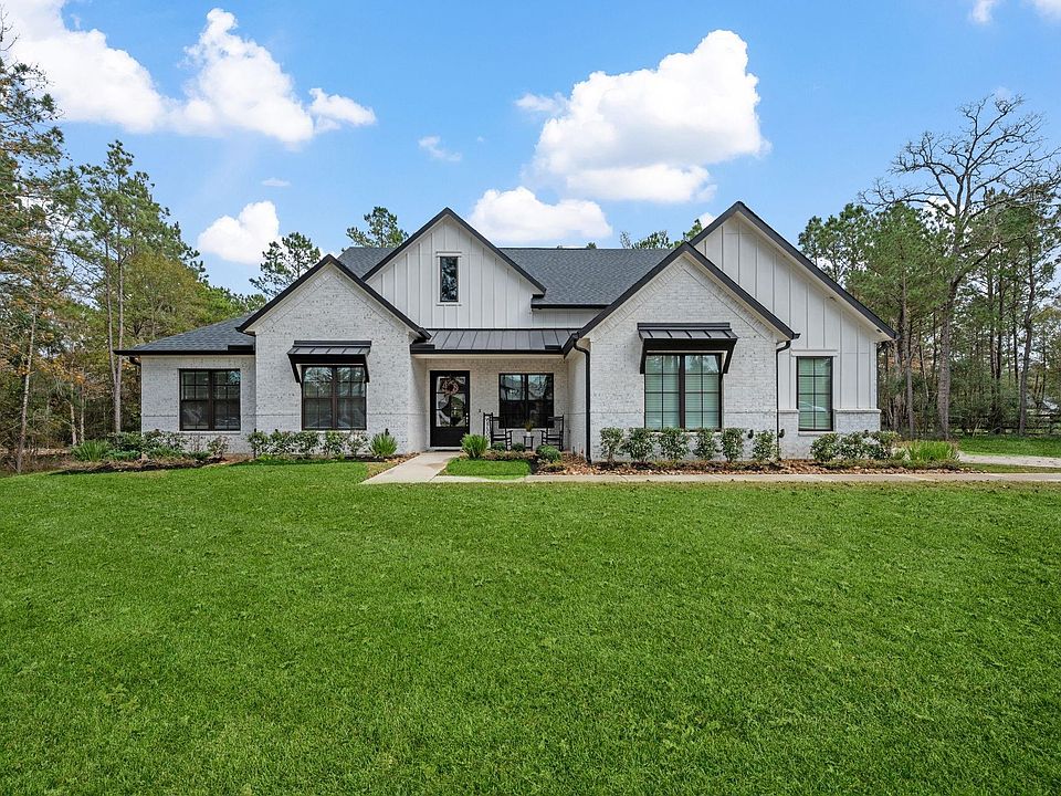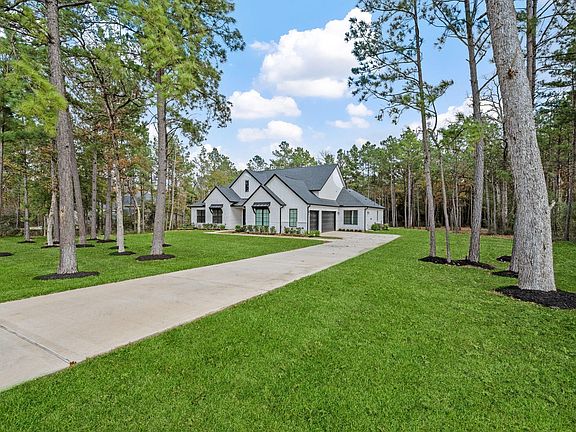 Welcome to this stunning 1-story home set on a peaceful 1.49-acre partially wooded lot. Built in 2023 and shows like new, this home offers an ideal blend of comfort, style, and space. Inside, you’ll find a split floor plan that features 4 bdrms, 3.5 baths, study, theater room. An add'l flex room off the 3-car garage provides versatile options for an office, storage, gym etc. The attic has been decked for storage. The main living area features an open-concept design integrating the kitchen and dining spaces to create the perfect setting for family gatherings. The kitchen showcases an upgraded island with additional cabinetry for extra storage & an expanded countertop that offers ample seating. High-end Bosch stainless steel appliances, quartz countertops, & a spacious walk-in pantry complete this functional space. The 30' x 10’ covered back patio offers an outdoor living space & includes gas, electric, and plumbing connections, making it perfectly equipped for a future outdoor kitchen.
