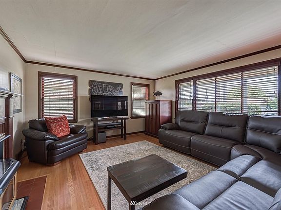 Beautiful Craftsman combining original details with modern updates. Upstairs has remodeled kitchen, original woodwork, Swedish finish hardwood floors, new carpet in bedrooms and crown molding through-out. Downstairs enjoy a river rock fireplace, custom built cabinetry with professionally installed entertainment system with surround sound in living room, main bedroom and bath. Main bedroom has walk-in closet with built-ins. Bathroom has large glass block walk-in shower. Storage room with shelving and work bench. Outside enjoy a spacious private backyard with 2 trex decks, uniquely stamped patio and outdoor speakers. Custom built shed with lean-to. Minutes from Golden Gardens, Larson's bakery and Ballard community pea patch across the street.