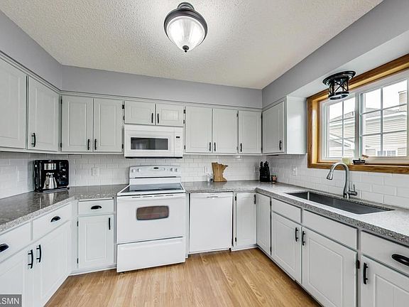 This adorable town home offers the one-level living you've been looking for. It features many updates such as quartz counter tops, white subway tile backsplash, painted cabinets with new hardware, updated light fixtures, and fresh paint throughout. Enjoy a cozy evening in front of the stunning stone, gas fireplace. The sun room features a new floating vinyl floor, and is perfect for a sitting room or home office. The location is convenient to freeways, yet feels tucked away in a park-like setting.