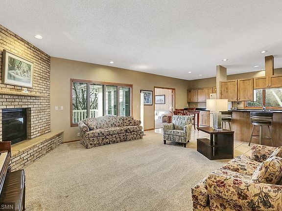 This outstanding custom designed Brick front rambler offers beautiful curb appeal, and has been so well maintained. Located on a beautiful ½ acre plus lot on a quiet cul de sac, the features and upgrades will welcome and surprise you.. The open floor plan boasts formal and informal dining and great room with gas fireplace and custom mantle surround. Main level also offers a peaceful all season porch with a private deck overlooking a beautiful wild area, the master suite with a full bath, and second bedroom/office/den with beautiful French doors. Two additional bedrooms can be found in the lower level that also features its own heating, and huge family room with its fireplace and walkout to a cozy private patio and gorgeous backyard. The workshop area features its own walkup directly into the three car garage, perfect for your âproject manâ (or woman!). This splendid home is inviting and personable, come see it today!