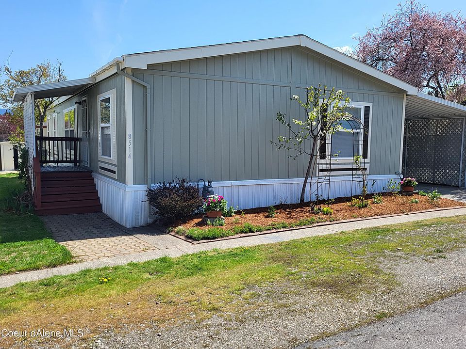 Wow, this is a great home! Immaculate double wide manufactured home located in the 55+ community of Hayden Pines Estates. This home features new luxury vinyl plank flooring, new carpet, and a new oversized walk-in shower in the master. Newly painted on all of the interior and exterior. The furnace and A/C are only a few years old and the roof is brand new! This spacious 1404 square foot home has a nicely fenced backyard and room for a garden. Conveniently located close to many of Hayden's goods and services such as Albertsons, the Post Office, Rite Aid, etc...