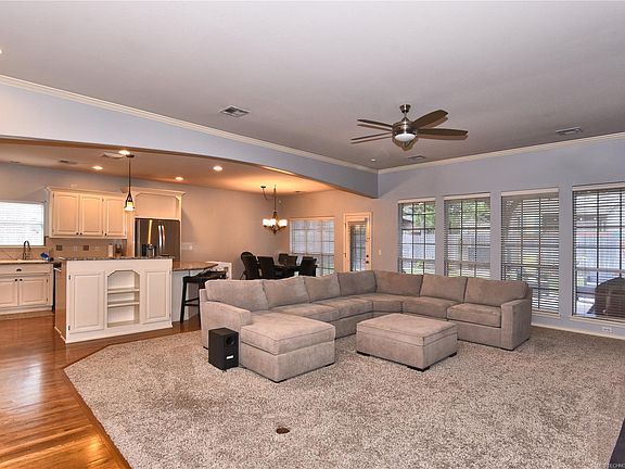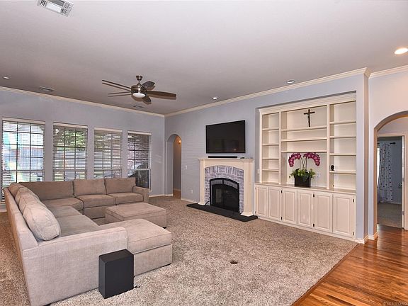Gorgeous French Country One Story Brick Cottage 3 bed, 2 bath, + optional office bedroom. Open concept with high ceilings and large living room. Living room window view open to spacious backyard great for hosting. Located in The Crescent and short distance to Tulsa Park which includes a Pond and Trail. Short distance to Union Top Rated A+ Darnaby Elementary school, as well as convenient shopping like Neighborhood Walmart and more!