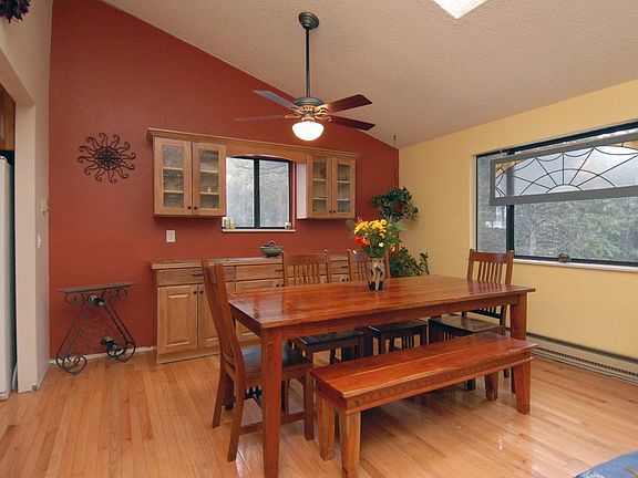 This 2 story mountain home situated on one acre among the aspen trees has superb mountain and city views. Updated kitchen has slab granite counters, hickory cabinetry, beautiful Mexican Noche tile backsplash & stainless steel appliances. Lower level has a walkout finished basement with a kitchen and private entrance. This space could be used as a mother-in-law suite or as an income rental space or Air B & B. This neighborhood offers all paved roads and is close to HWY 285. Enjoy quick access to all your favorite mountain activities including fishing, hiking, biking and a head start to the ski resorts. This easy, all highway, commute to Denver makes living in the mountains a dream.