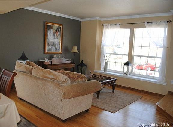 Perfection is here! Gorgeous hardwood floors throughout most of main level into living room, dining room and kitchen areas. Spotless designer decor throughout with custom blinds and draperies. Luxury master suite with incredible Pikes Peak views. Jetted master tiled bath, theatre room and rec room with wet bar. Central vacuum, central A/C, alarm system, and prewired for hot tub. Underground sprinkler system. 50 year Mularkey roof, waterfall and open pastures to the east! Award winning D-20 schools and wolf ranch amenities.