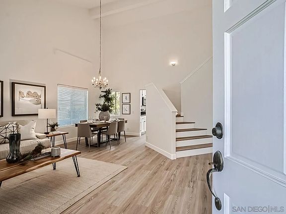 Beautifully maintained, move-in ready home located in the highly sought after Mesa Heights neighborhood of Santee. The interior features soaring ceilings, spacious living areas, a separate family room, large kitchen, & a first floor bedroom & bathroom. The cozy family room includes a fireplace and also opens to your private outdoor patio/living area with low maintenance, drought tolerant landscaping, & mountain views! Upstairs features 3 bedrooms, including a huge primary suite (with views) complete with a walk-in closet, soaking tub & separate shower. Located close to Mission Trails and Santee Lakes with some of the best hiking & nature in San Diego county. Quiet, scenic & close-knit neighborhood, centrally located near schools, freeways & shopping.