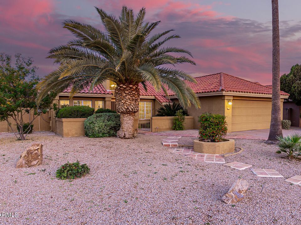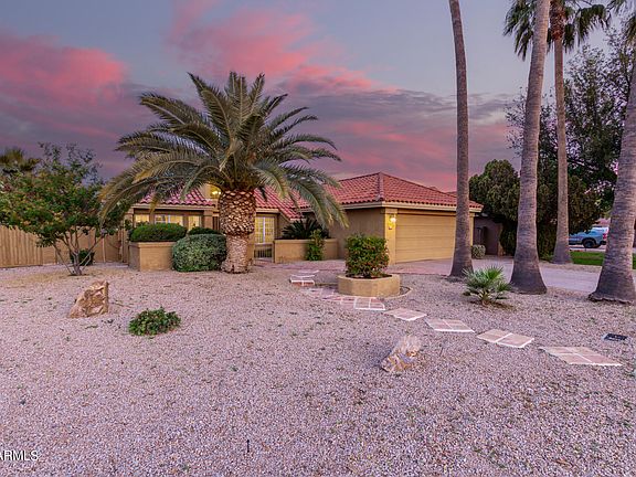 Beautifully updated home in Pecan Grove Estates! One of the larger lots in the subdivision, 10,907 Sq Ft (per county assessor). Relaxing, resort-style back yard with sparkling play pool (resurfaced in 2023), private gazebo & fire pit. Professionally landscaped front and back yard w/ mature citrus and palm trees. Large built in storage shed. French doors, ceramic wood-look tile in the main living areas & carpet in the bedrooms. Granite counters in the kitchen & baths. Stainless steel appliances. Gorgeous stone fire place & 9 ceiling fans. Updated lighting & faucets. Vaulted ceilings throughout. AC (Trane) replaced in 2014, water heater in 2016. Great location with easy access to Intel, Qualcomm, Honeywell, I-10 and Sky Harbor Airport!