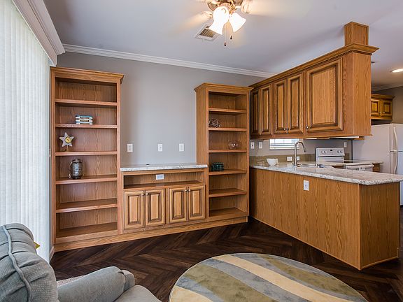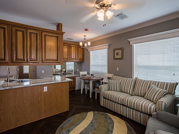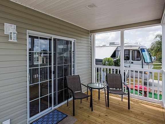 Welcome to Winterset RV Resort. Our residents make the community special. We’re an active 55+ community with plenty to do, especially during the winter months. We are located just off US 41, and our residents enjoy easy access to I-75 and I-275. Come see this brand new 2016 Skyline One Bedroom One Bath Home. The 14' wide home has a nice sized bedroom with storage cabinets for clothes and a pocket door for extra movement. There is a stacked washer and dryer and the bathroom has a walk in shower, linen closet, vanity with sink. The kitchen and dining area as well as living room are a large open space with built ins in the living room for entertainment. The galley kitchen has all appliances with plenty of cabinet storage. The living room has windows on three sides for great light. This home is completely furnished for the best of paradise living. The covered porch has PVC railing and a ceiling fan to keep the nice breezes coming thru. The manufacturer provides a full one-year warranty from date it sells. Banks, shopping center and entertainment is just minutes from the resort. Look across Frog Creek at the Terra Ceia Preserve, which gives our residents a unique view of Florida wildlife and nature. This is a must see. Give Barb a call and arrange for a private showing. 941-722-4884. Features Include: Central A/C, Dish Washer, Disposal, Land Lease, Laundry room inside, Microwave, Pet Friendly under 35 lbs, Range/Stove, Refrigerator, Shower, Vinyl Flooring, Vinyl Siding, Window Treatments, Carpeting in the bedroom, Step in Shower, Vinyl flooring with tile look, All Whirlpool Appliances, Washer & Dryer, Large pantry, Storage throughout, Faux wood blinds, Large entertainment center to fit 60" TV