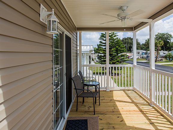 Welcome to Winterset RV Resort. Our residents make the community special. We’re an active 55+ community with plenty to do, especially during the winter months. We are located just off US 41, and our residents enjoy easy access to I-75 and I-275. Come see this brand new 2016 Skyline One Bedroom One Bath Home. The 14' wide home has a nice sized bedroom with storage cabinets for clothes and a pocket door for extra movement. There is a stacked washer and dryer and the bathroom has a walk in shower, linen closet, vanity with sink. The kitchen and dining area as well as living room are a large open space with built ins in the living room for entertainment. The galley kitchen has all appliances with plenty of cabinet storage. The living room has windows on three sides for great light. This home is completely furnished for the best of paradise living. The covered porch has PVC railing and a ceiling fan to keep the nice breezes coming thru. The manufacturer provides a full one-year warranty from date it sells. Banks, shopping center and entertainment is just minutes from the resort. Look across Frog Creek at the Terra Ceia Preserve, which gives our residents a unique view of Florida wildlife and nature. Features Include: Central A/C, Dish Washer, Disposal, Dryer, Land Lease, Laundry room inside, Microwave, Parking - 2 Car, Pet Friendly under 35 lbs, Range/Stove, Refrigerator, Shower, Smoke Detectors, Unfurnished, Vinyl Flooring, Vinyl Siding, Washer,Neutral color carpeting in bedroom, Step in Shower with 2 seats, Vinyl flooring with tile look, All Whirpool Appliances, smooth top range, refrig, over range microwave, washer and dryer, Large Pantry and lots of storage. throughout, White faux wood blinds with matching cornices in each window, Large entertainment center to fit 60" TV.