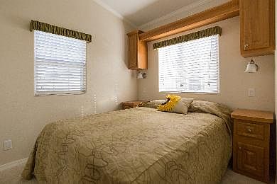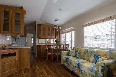 WINTERSET RV Resort - free lot rent for six months if you buy between now and the end of July 2015. This 2015 Chariot Park Model is the perfect place to call home. Step into your kitchen with all new appliances and plenty of counter space. The open floor plan leads straight into the dining area with gorgeous cabinetry and the living room filled with light. This leads out to your large covered patio so you can enjoy Florida's beautiful weather right in your own home. The master bathroom includes a queen bed, while the second bedroom is furnished with a sofa bed to allow usage as a den or a crafts room. The bathroom includes a step-in shower with two seats for your comfort. A full-size washer and dryer come with the home, which are tucked away so they don't take up much space. You'll love all the storage options available to you, including an outdoor shed! There's so much value in this home that you'll have to come see it for yourself. Call today for a personal tour. * Carpet * Furnished * Queen Bed * Smooth Top Range * Carpet in Bedrooms * Land Lease * Range/Stove * Step In Shower with 2 seats * Central A/C * Microwave * Refrigerator * Washer * Covered raised deck * Non-Smoking Owner * Shed * Window Treatments * Custom chosen furniture package * Parking - 1 Car * Shingle Roof * Wood Flooring * Full Size Washer and Dryer * Pet Friendly * Shower