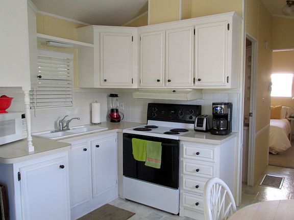 This home has been lovingly cared for, upgraded and maintained. This beautiful home backs onto treed area. Al to preserve the peacefulness of your private back yard. This is a must see. If you have a pet, they will love it too. This home includes stackable Washer & Dryer New 2016 rubber membrane roof - warranty passes to buyer. Home is bright with lots of windows and 2" faux wood blinds Florida room is fully insulated, enclosed and vented for heat and air. 6 ft. vinyl privacy fencing around back of patio. Patio furniture, gazebo, 4x6 shed and pot belly fireplace rounds out the great patio area. Features Include: Cathedral Ceiling, Ceiling Fan(s), Central A/C, Florida Room, Land Lease, Microwave, Non-Smoking Owner, Parking - 1 Car, Range/Stove, Refrigerator, Roof Over, Shed, Smoke Detectors, Tub/Shower Combo, Turnkey Furnished, Vinyl Flooring, Vinyl Siding, Window Treatments