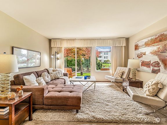 This spacious 2-bedroom, 2-bath condo offers the convenience of main flr living with no steps into the unit. One of the standout features is the abundant natural light that filters through large windows, creating a warm & inviting atmosphere throughout. The design of the living area allows for seamless flow between living rm, dining area and kitchen. Primary bedroom looks out over the garden area w/separate bathroom. Step outside to enjoy the private patio & beautifully landscaped grounds that are meticulously maintained. One of the highlights of this home is its direct access to the inground pool, just steps away. Conveniently located to public transportation & minutes from downtown Edmonds. This condo is not just a home; its a lifestyle!