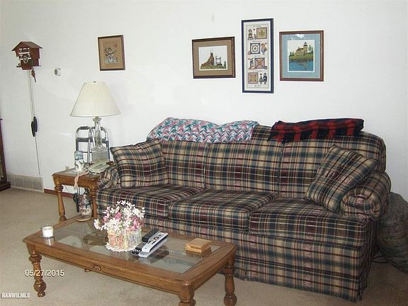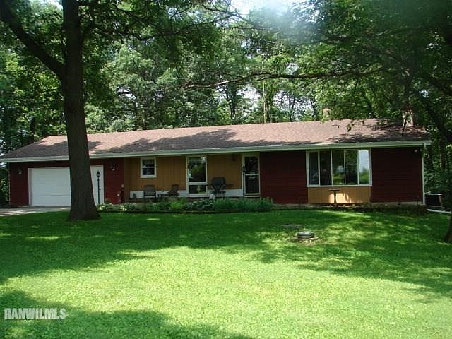 Nestled in this 5 acres of timber sits this 3 bedroom, 1.5 bath home. This is great for hunting. It features hickory cabinets in kitchen with eat-in dining area. All appliances are sold "as is". Living room has wood fireplace with built-in shelving on both sides of Bay window. The 4 season room is off the back of 2nd bedroom. A very relaxing view of the woods to enjoy day or night. Lower level features family room with wood fireplace and 3 other areas for storage or workshop. Newer features include roof 3/4 years old, hardwood floors 1/2 year old, water softener 2 months old, gutters 3 years old, new septic 10 years old and furnace and A/C are 13 years old. There is a wood stove in basement also.