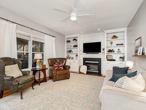 - Bathtub/Shower Combination, Bookcases, Breakfast Bar, Built-in Features, Ceiling Fan(s), Double Vanity, Dual Closets, High Ceilings, Kitchen Island, Separate Shower, Soaking Tub, Stone Counters
