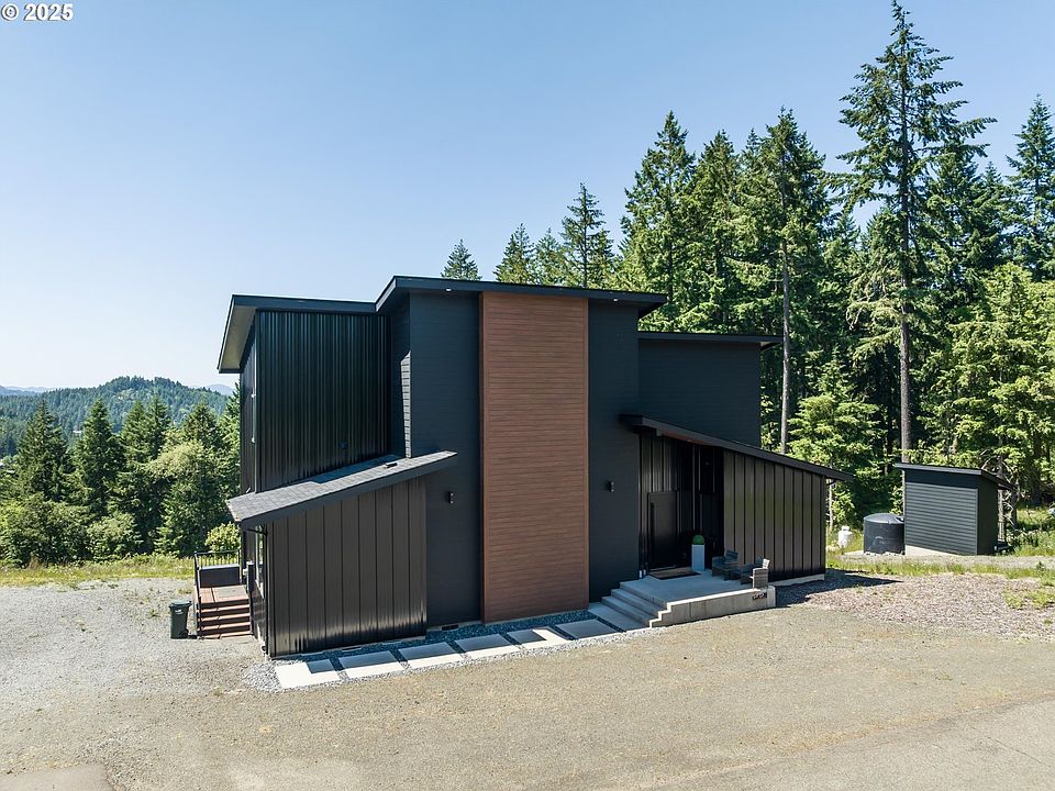 If you love nature, own a stellar art collection, or have an affinity for open floor plans & sleek lines, then you will love this unique modern home embraced by the surrounding forest with views as far as the eye can see. Every corner of the home is thoughtfully curated, delighting the senses with its seamless design and meticulous attention to detail. A sleek minimalist aesthetic ensures timeless appeal. The main living area features soaring ceilings, a cozy fireplace, floor-to-ceiling windows that showcase breathtaking views of the forest & valley.The open-concept great room flows into a gourmet kitchen outfitted with high-end appliances, including a 60-inch Wolf Dual Fuel Range w/double ovens, Jenn Air appliances: freezerless fridge, dishwasher & microwave drawer. European-style custom cabinetry and an extra-large island make the kitchen perfect for entertaining. The kitchen walls are smooth & glossy traditional Moroccan finish – Tadelakt. A wet bar w/under-counter fridge, ice maker, & Jenn Air built-in coffee maker for fresh-ground coffee or instant hot water anytime. An open-riser staircase leads to the Primary Suite, where you feel as though you’re floating above the treetops with stunning views. The suite includes an oversized closet area with an in-suite washer and dryer, and a luxurious en-suite bathroom featuring a glass-enclosed shower and a 72-inch Native Stone soaking tub with floor-to-ceiling windows. The main-level bedroom is well-appointed, providing comfort and privacy for family members or guests. Finish of third bedroom in progress.